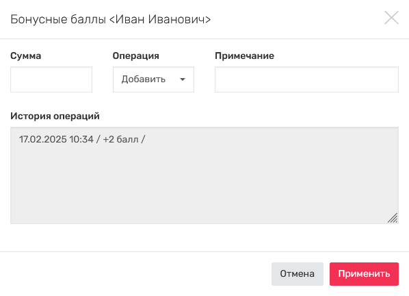 Как добавить или списать бонусные баллы?