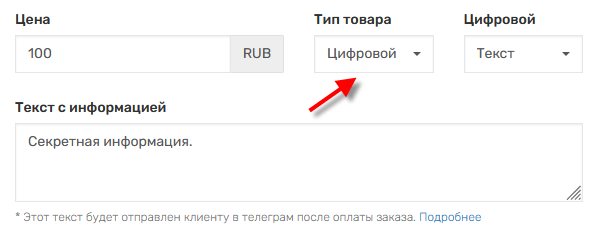 Цифровой товар — это информация или файл, которые отправляются пользователю в сообщении телеграм сразу после покупки.